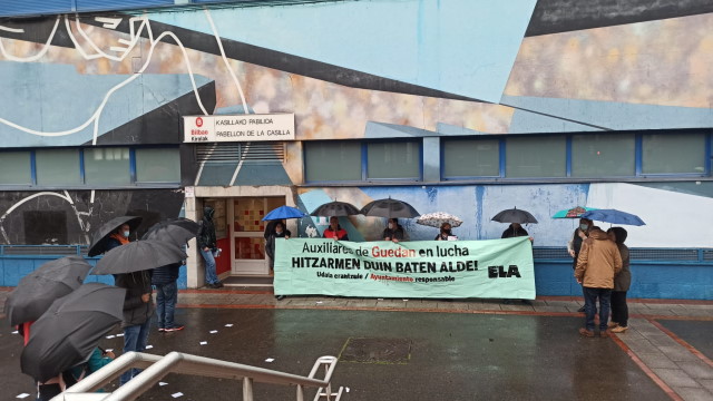 Trabajadores y trabajadoras auxiliares de polideportivos de Bilbao Kirolak han iniciado una huelga este lunes 14 de marzo, para exigir a Guedan Servicios Deportivos, la subcontrata que presta el servicio en estos recintos municipales, la mejora de sus condiciones laborales.