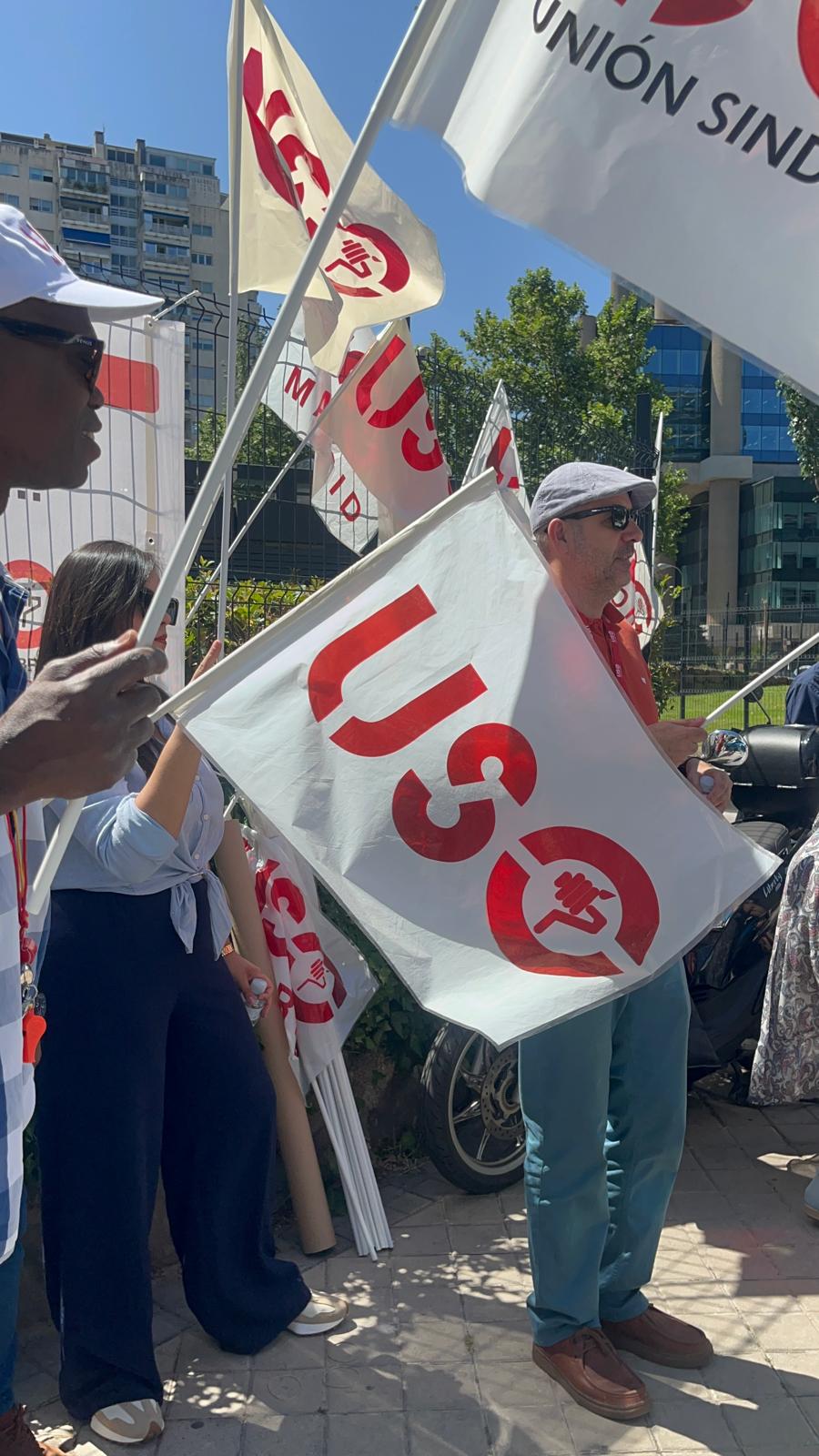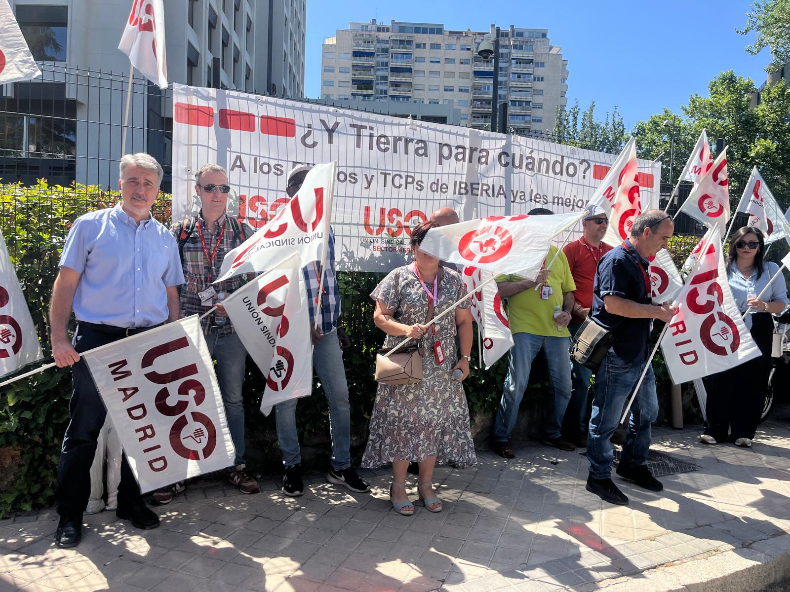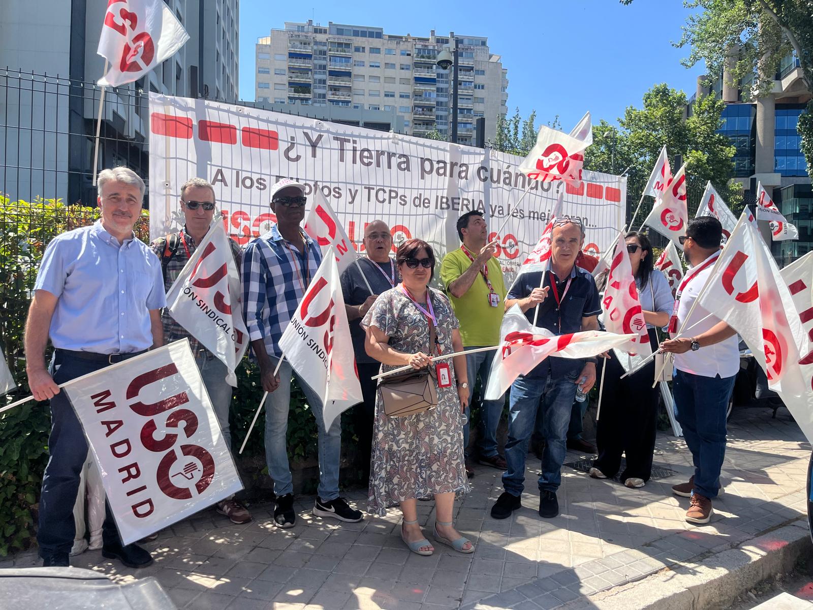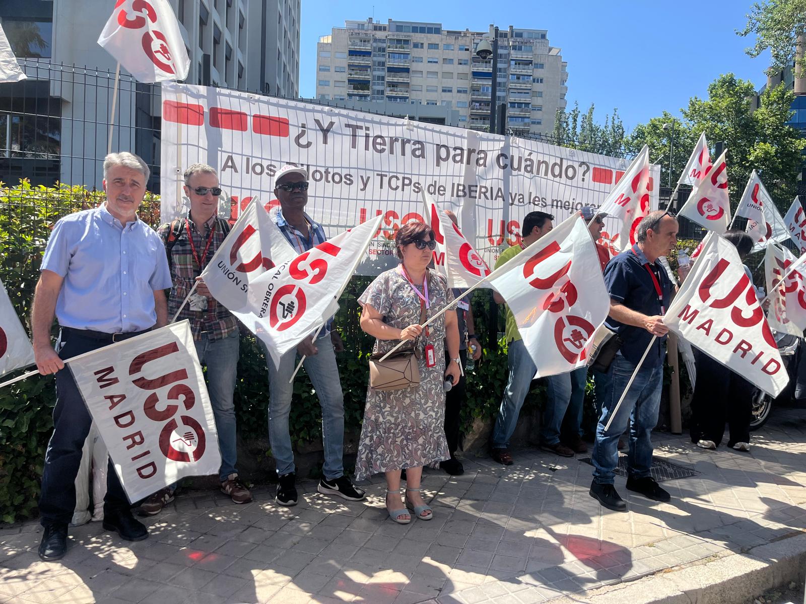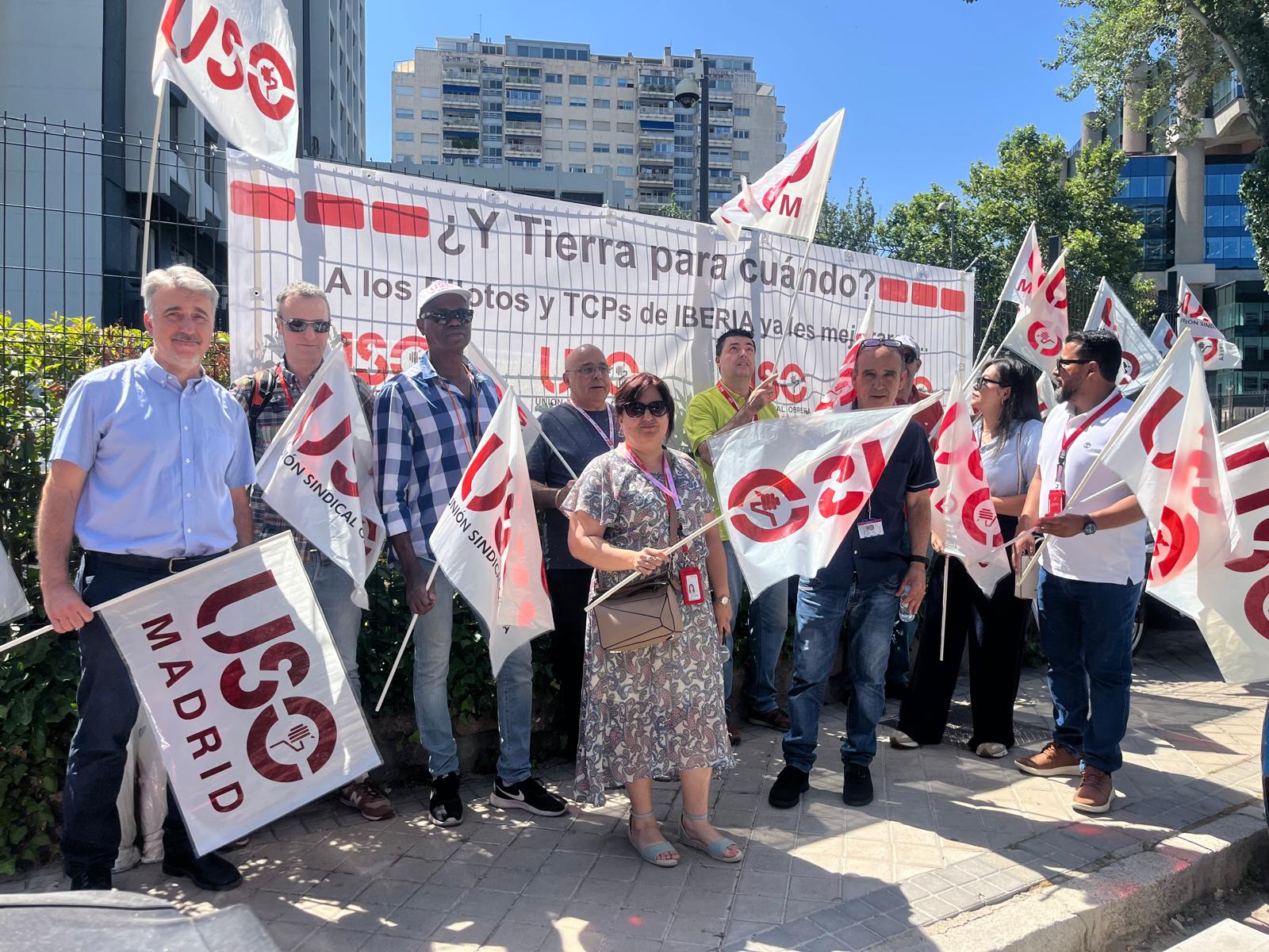 USO se concentra en la sede central de Iberia en Madrid con una clara y contundente reivindicación la de solicitar de manera urgente la apertura de la mesa negociadora del convenio de Iberia Tierra con el fin de negociar la prórroga de convenio como Pilotos y TCPS.